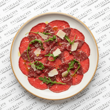En klassisk Carpaccio av högsta kvalitet, färdigskuren i tunna skivor. Våra 400 g-förpackningar är perfekta för att servera som en elegant förrätt. Servera enkelt med olivolja, parmesan och ruccola för en smakupplevelse av Italien.
